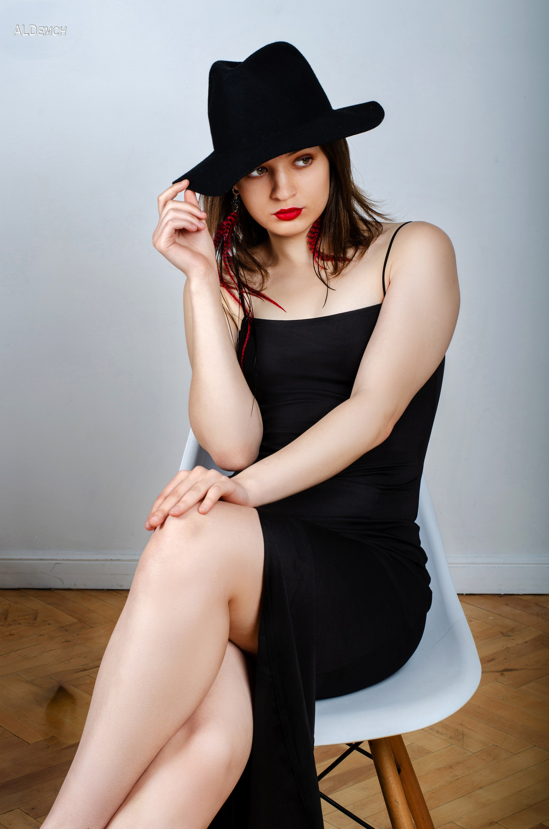 Чёрное обтягивающее платье: элегантное, лаконичное, подчеркивающее фигуру. Такой наряд идеален для boudoir или fashion-съёмки, где важна чёткая силуэтная линия и уверенность взгляда.